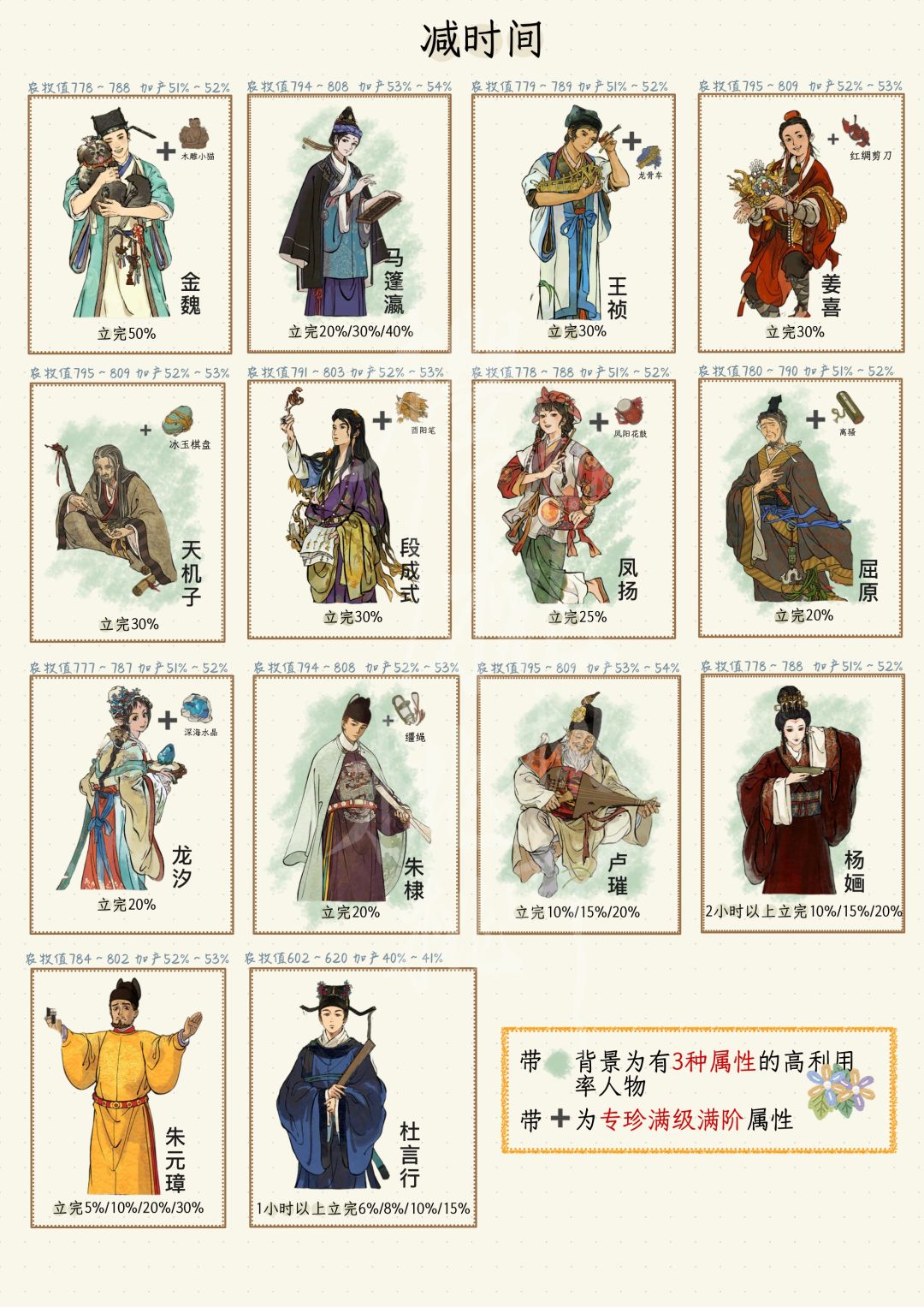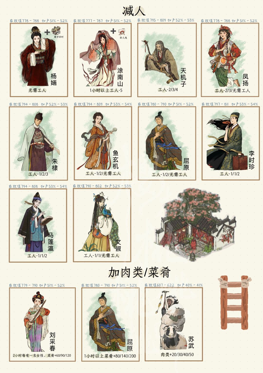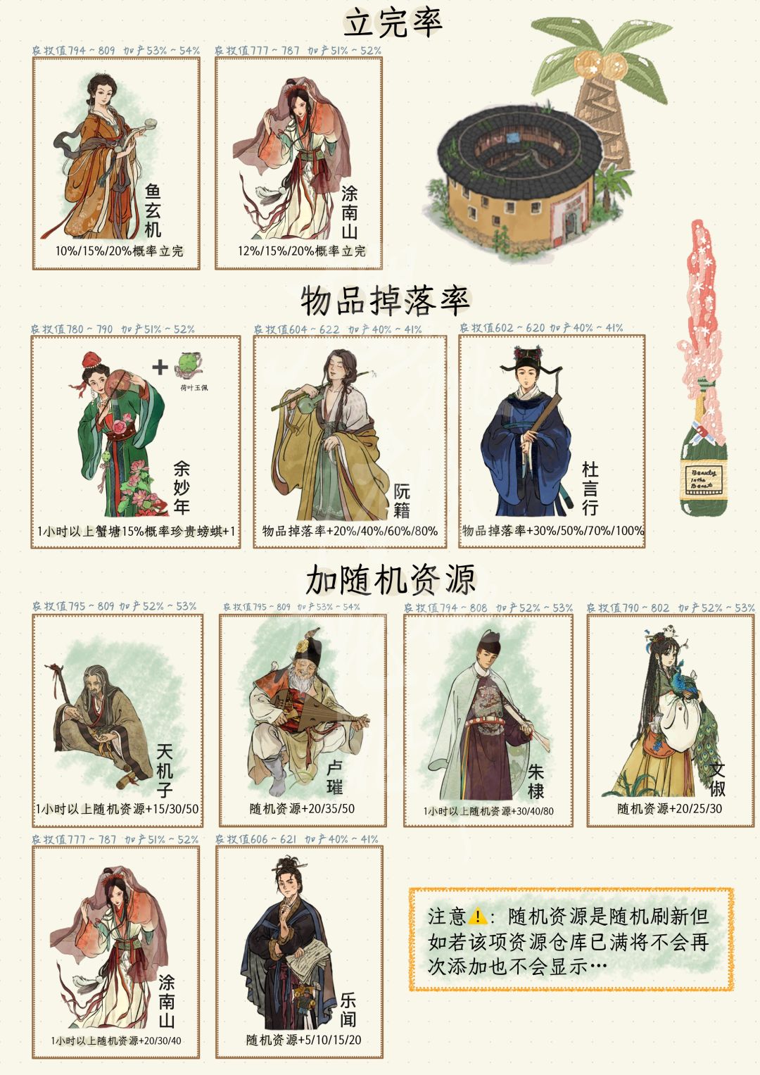 🎲|分类:生产专属、投色槽、加产、减时间、立完率、物品掉落率、加随机资源、减人、加菜肴、加铜钱、加属性数值