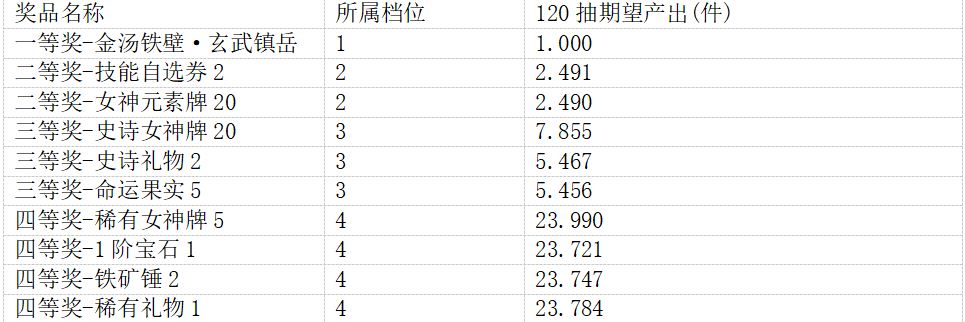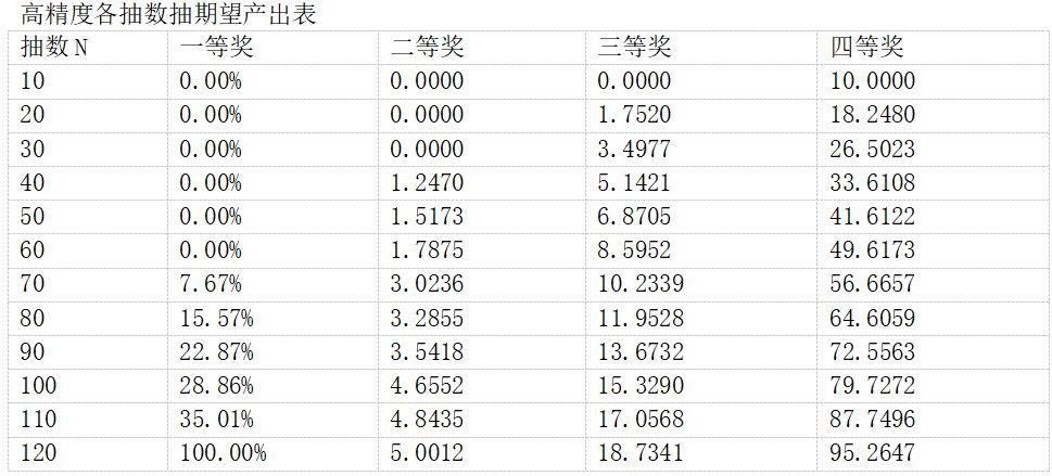 8.4 120抽期望产出表下表为在 120 抽结束时,各奖品与各档位的期望产出(图4 5 6)。