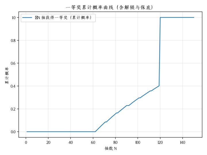 解读:60–119 抽在自然概率与下档保底顶替的共同作用下缓慢上升;第 120 抽达到 100%