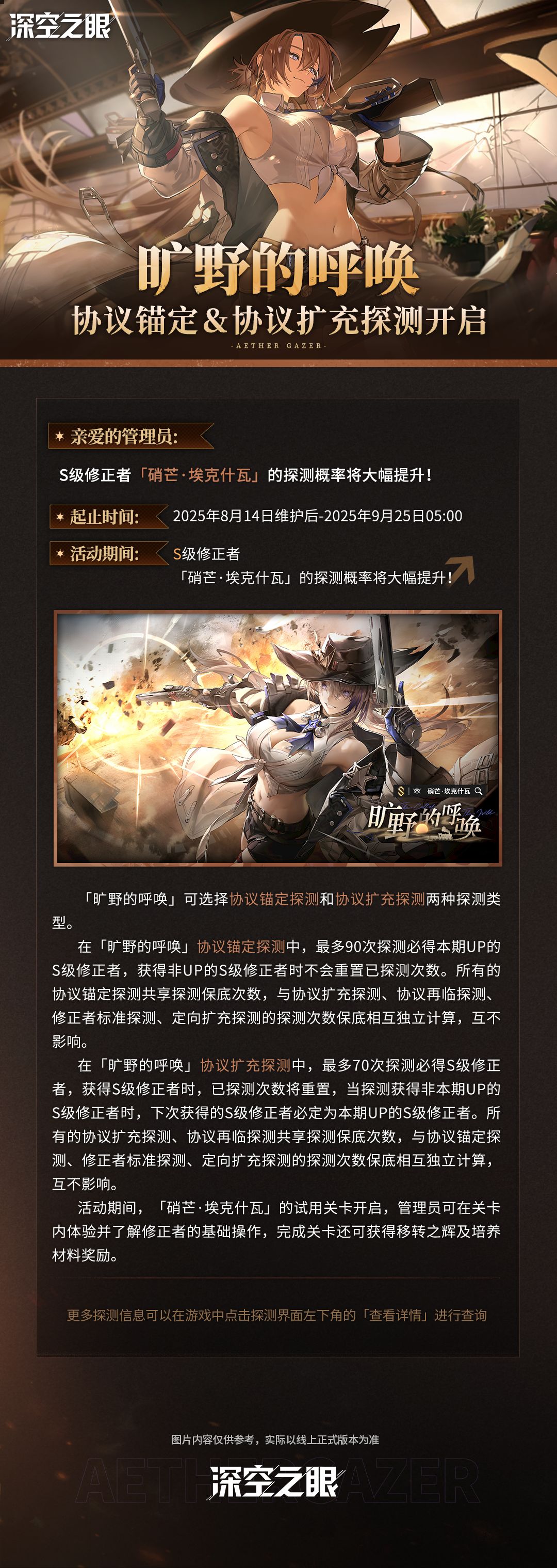 「旷野的呼唤」协议锚定&协议扩充探测即将于8月14日维护更新完成后开启,具体探测信息请看下图!