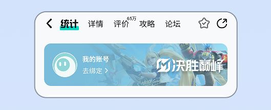 绑定后玩家可在个人主页中查看到自己的《决胜巅峰》专属游戏名片,名片上将展示总场数、总胜率、段位信息,点击进入后即可查看更多游戏数据