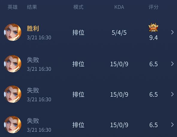 展示您近期(50局)的KDA、胜负、角色评分对局时间等对局数据,点入可以查看队友和对面具体的英雄出装更详细的信息