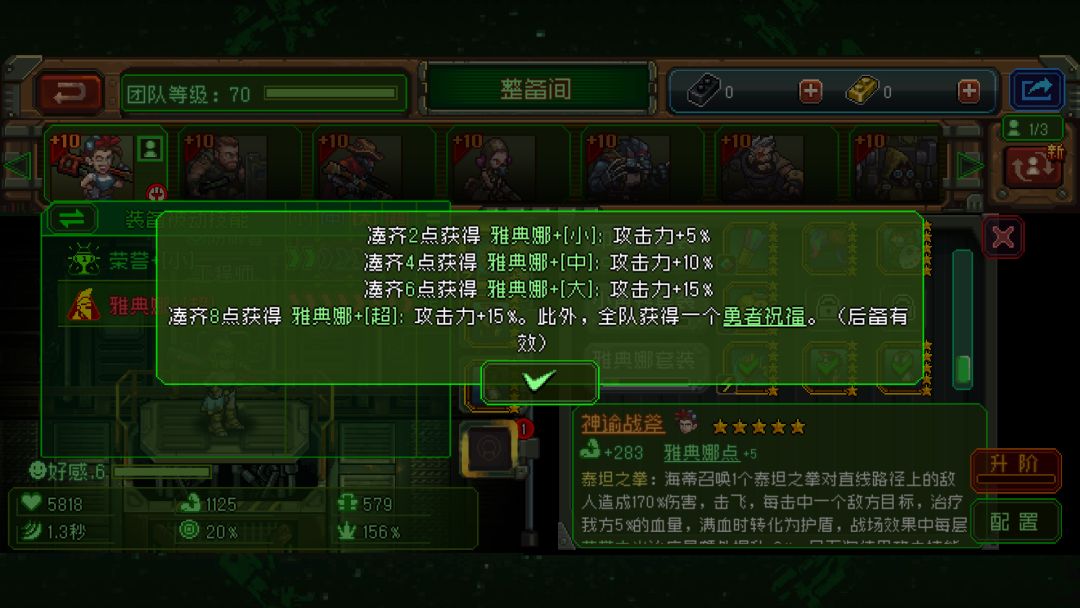 【雅典娜】效果能提升海蒂攻击力,当获得雅典娜+[超]效果时,自身攻击力+15%。此外,全队获得一个【勇者祝福】。