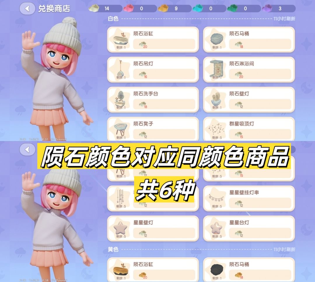 朵朵商店可用同颜色陨石交易同颜色家具,明天0:00刷新。(明天0:00-6:00🌠)