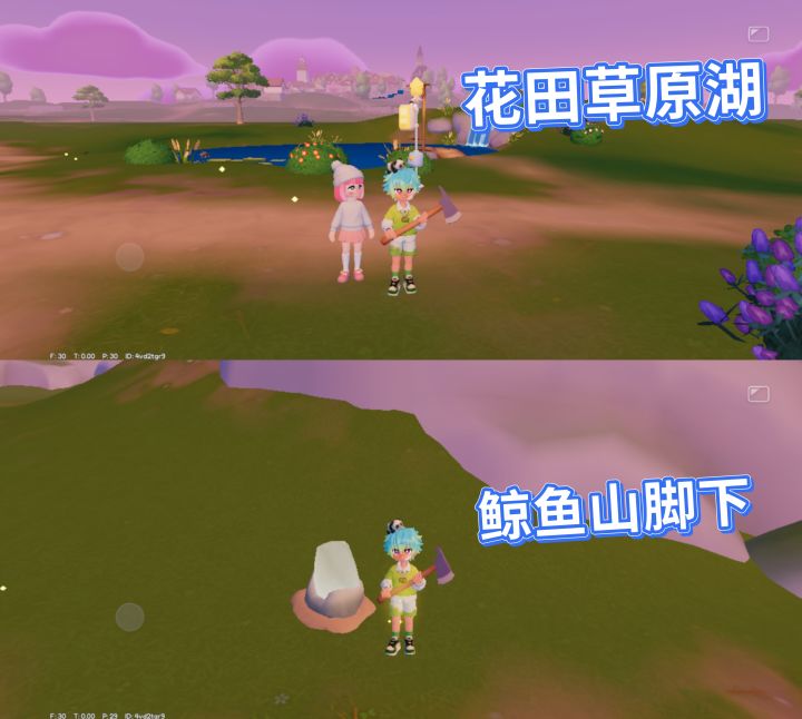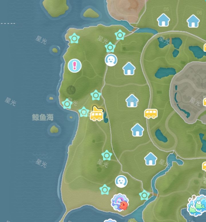 星陨碎片在鲸鱼山脚下两边周围,目前发现9处.如图2(收集可以去找流星朵朵兑换家具和动作)