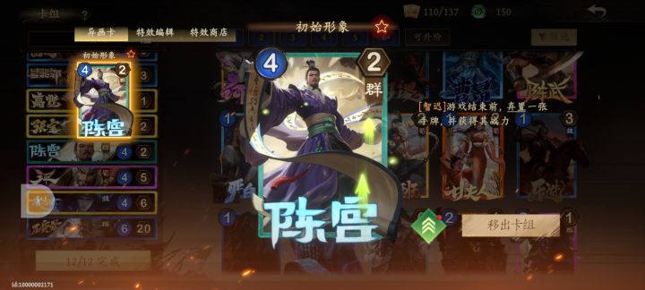 当然单单依靠一费卡的力量是不太能够赢下游戏,所以加入了高揽,陈宫,兀突骨三个武将形成弃牌三人组。由于该卡组都是低费卡,很容易将手牌清空,可以轻松触发高揽的加攻特效,当然更常见的是将手里低费打光,只保留兀突骨让陈宫丢弃来获得战力。手里牌太多的情况我们也可以用星张郃来辅助丢弃,尽量让陈宫和高揽触发特效。