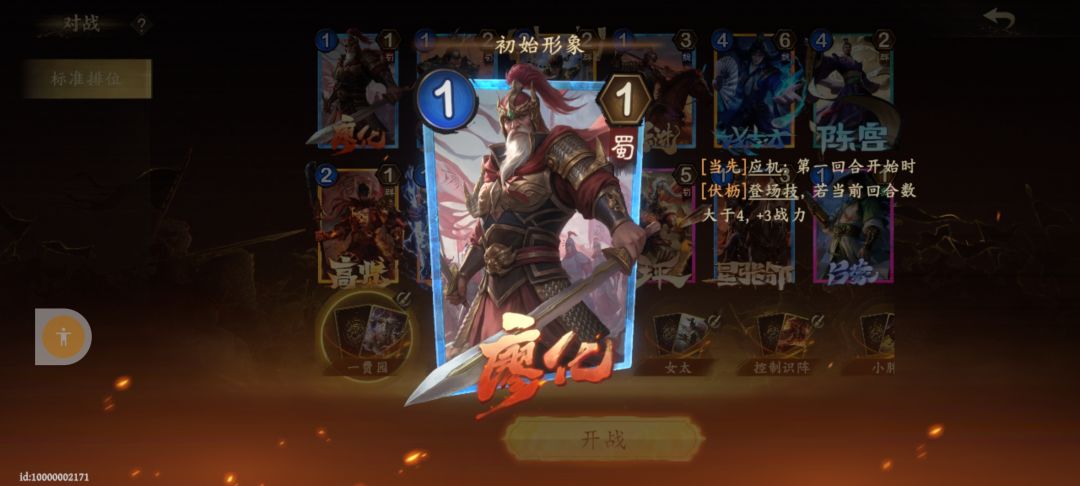 具体打法是有啥下啥(廖化星张郃以及张梁除外),尽量把场站住,四回合王平,五回合双管➕双管。六回合就可以将剩下的一费卡倾泄打出,瞬间铺满场地,打出高额爆发。