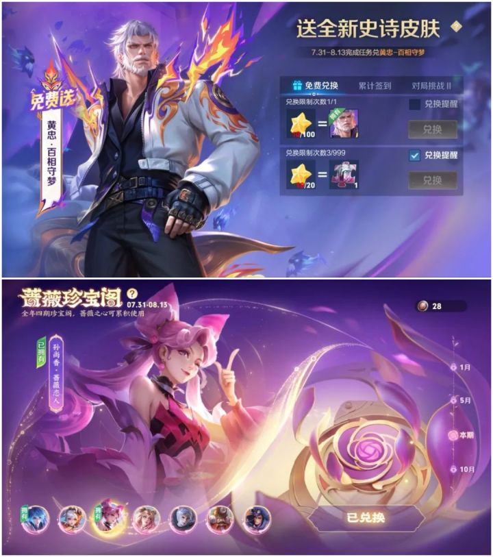王者荣耀正式服将于14日迎来更新,皮肤商城将新增黄忠-百相守梦限定史诗皮肤,首周售价710点券。该皮肤此前可通过活动免费获取,但需完成指定任务积累100许愿星,未达成的玩家需抓紧时间哦。此外,珍宝阁兑换商店将于13日关闭,内含七款稀有皮肤,每款需150枚蔷薇之心兑换,获取难度较高,这边是建议玩家优先考虑姬小满-妄想食味和弈星-万物之道两款性价比较高的皮肤哦。