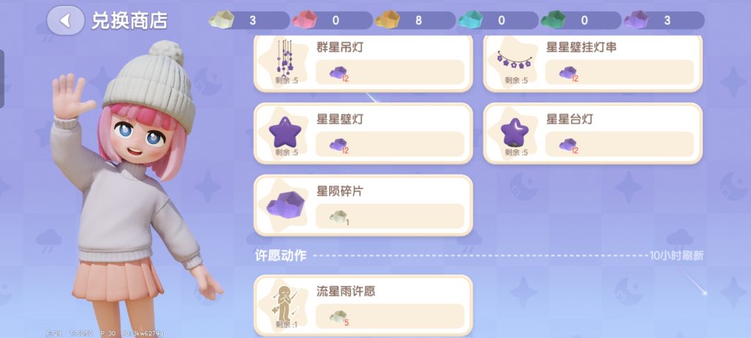 朵朵在花田公交站旁边,可以兑换家具和一个动作!下一次流星雨就是这周六啦。