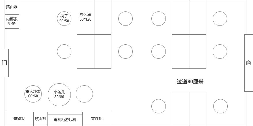 当前的构想,10个工位可以给以后招人预留点地方,当然8个就够了。