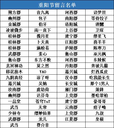 历时五天的“ 群侠故事会-重阳节”活动圆满结束,在这里,为大家公布本次活动的获奖名单: