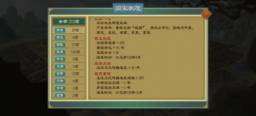 职业期许说明:部分史传人物或者实施了各个职业的第一个引申政策即可获得相应的职业期许。