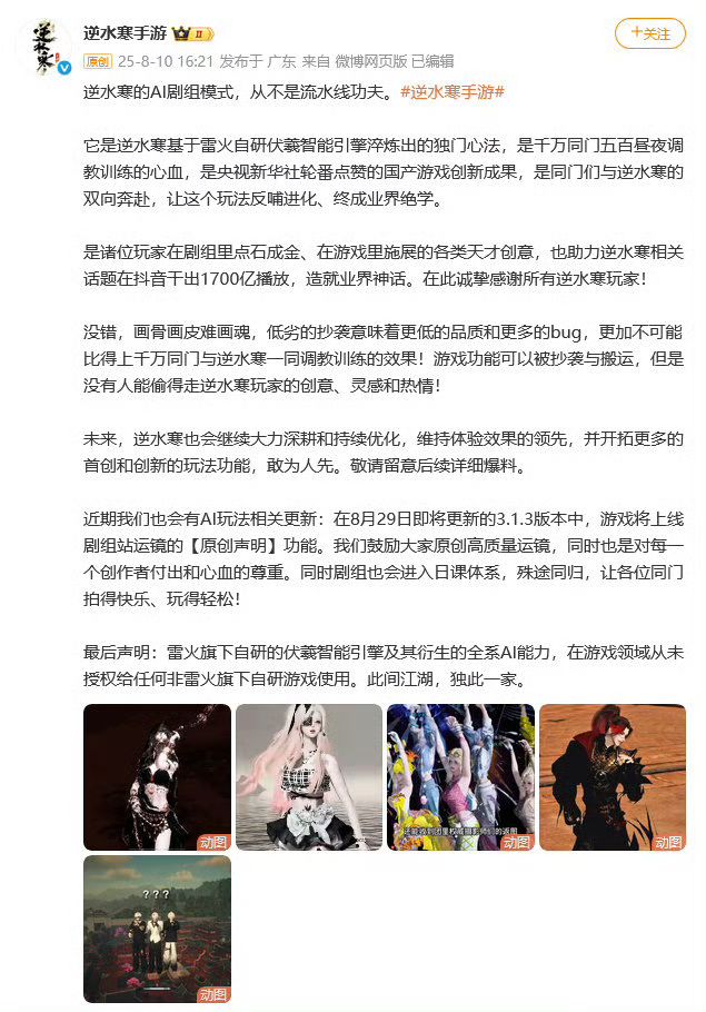 上周,网易的《燕云十六声》上线全新“戏乐模式”,这可引发了一场风波。它被《逆水寒》玩家指责抄袭自家的“剧组模式”,而且《逆水寒》官博还来了波阴阳怪气。