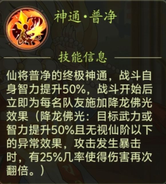 普净和其他原生仙一样,一个主动,两个被动,下面按重要程度分别给大家解析。