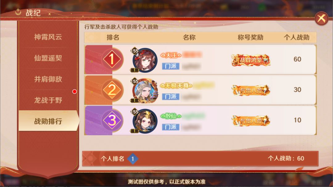 随战勋系统一同登场的,还有全新的战勋排行榜。活动结束后,同一场活动内个人战勋排行前三的守护使,将会获得独特的称号奖励!