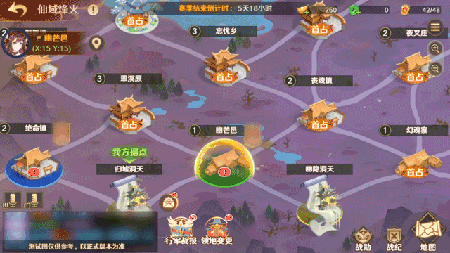 ● 备战阶段:仙域烽火活动开启首日10时将会进入备战阶段,此阶段各门派可选择出生点。