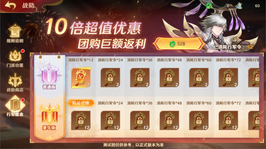 在战勋系统页面,守护大人还可通过普通版行军基金,来获得额外的行军令。当守护使消耗的行军令达到对应数额时,便能通过基金进行适量补充,解锁豪华版行军基金还能获得更多行军令。正所谓兵贵神速,希望这额外的行军令,能助您逆转战局!