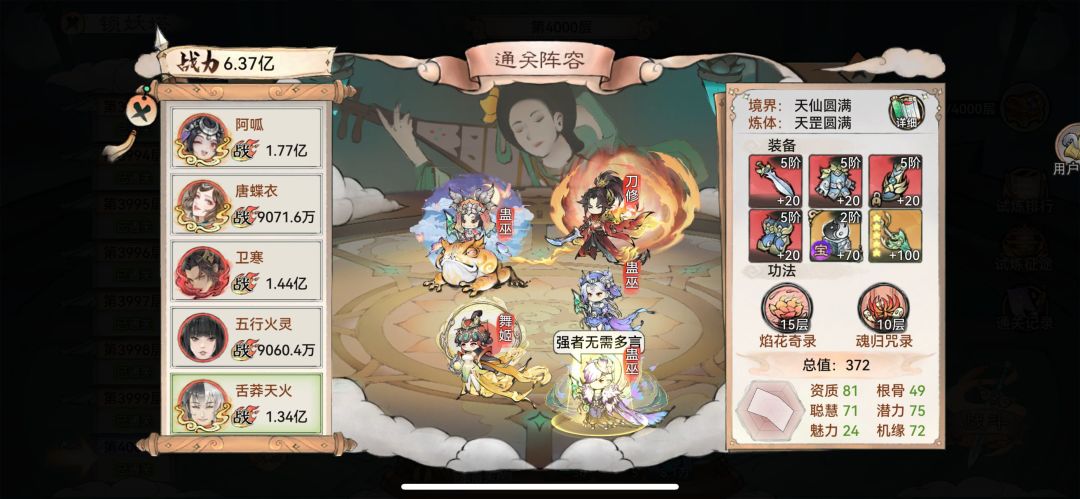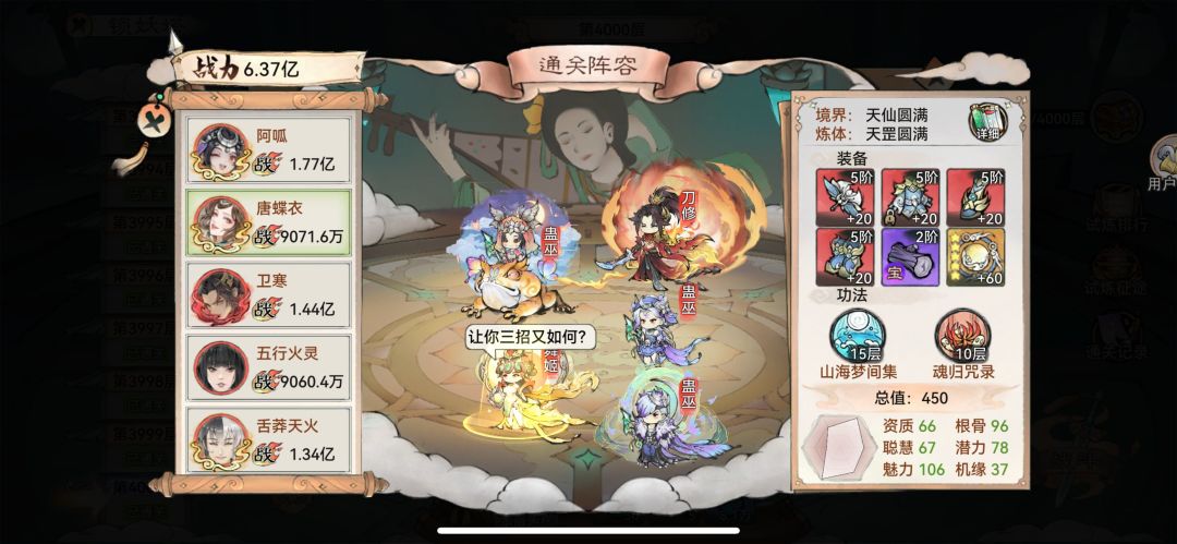 up主前两天爬过了4000层,有仙友想看爬塔阵容,但up主的蛊队练度稍微高了一丢丢~~~,阵容发出来仅供参考。练度低可以打低点的层数嘛~~~