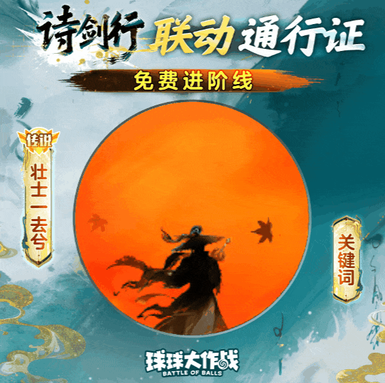 通行证专属关键词!真·零氪·免费!球宝解锁资料片进阶通行证【诗剑行】,即可拥有传说关键词「壮士一去兮」!剑气纵横波拉哩,一剑光寒任君游!