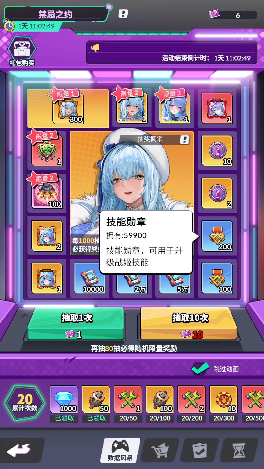 而这个转盘每一个的保底奖励都是不同的,像图上这个转盘,他的次奖励是以战姬经验和战姬技能,所以对于材料是否缺少,主要以这个抽奖奖品的内容为准。