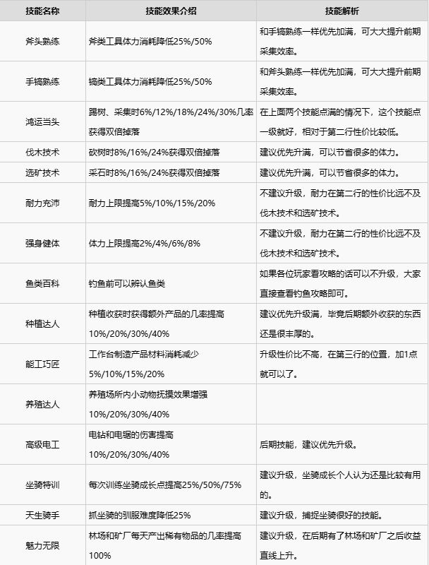 《波西亚时光》中,共有生存、生活与社交三大类技能,每个技能效果也各不相同,了解每个技能的效果对于玩家的发展极为重要。