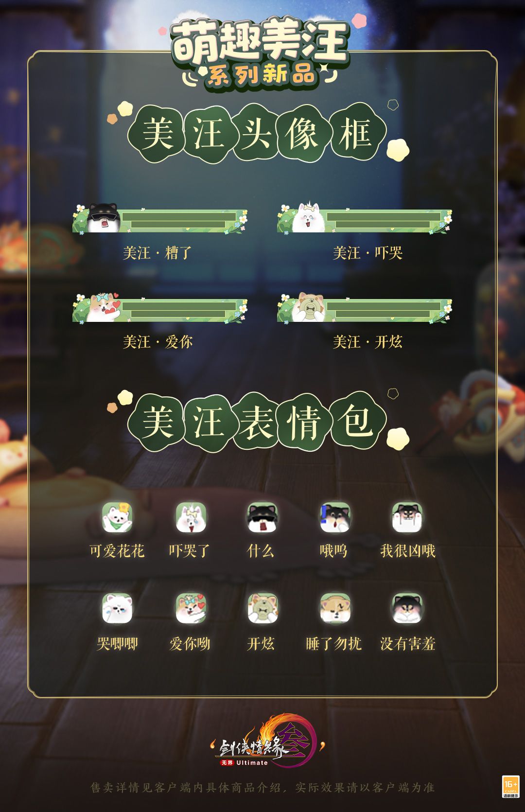美汪表情包:8月14日7:00永久上架游戏内商城及网页版商城,售价1,800通宝,为绑定款。