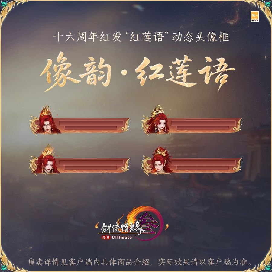 梧桐摧烈焰,凰羽铸红莲。十六周年红发“红莲语”同款动态头像以凰羽为底,灼灼焰光随风而动,点点星火萦绕其间,从另一角度展现侠者卓绝气质,炙热飒然。