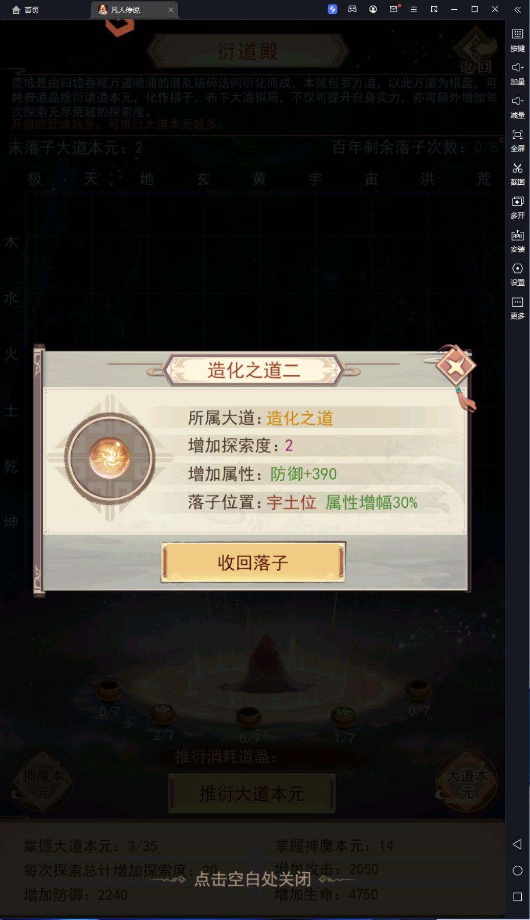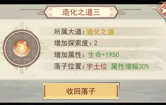 造化6 放在 宇土 位置时,不仅会享受100%加成,还会额外获得 大道祭台的祭道效果,并有特殊图标