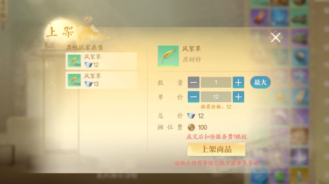 我们做出来不错的法宝或装备,价格合适就赶紧卖,不用老想着卖高价,毕竟是过渡装备不卖之后会越来越贬值,银锭赚到手有现金流才是王道。