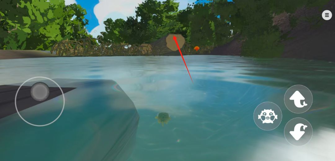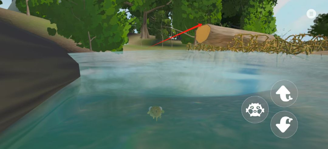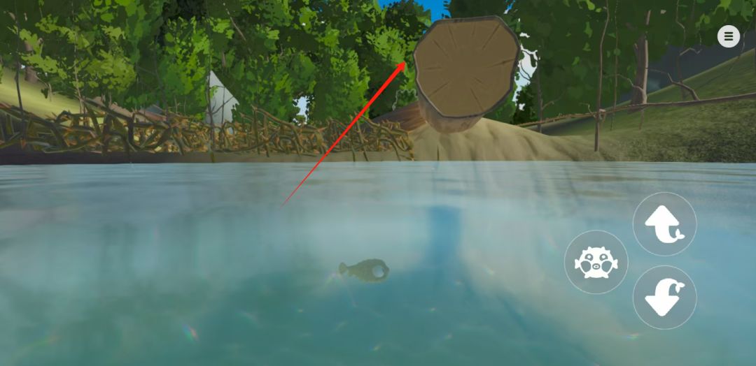 到一根巨大木头挡路的位置后,潜到水底然后往前跑用技能河豚能弹射升天