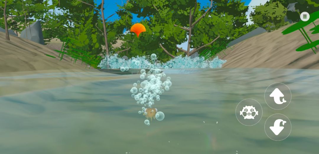 团成团:河豚的技能,可以把自己变成一个球,然后使用上浮和下潜按钮可以轻微的操控弹跳(离地1mm),不过河豚在开技能期间是没办法在水中移动的,同时河豚在面对一些上坡时也没办法滚上去(简单理解成鱼缸就行。)