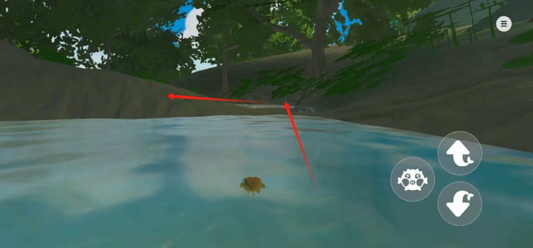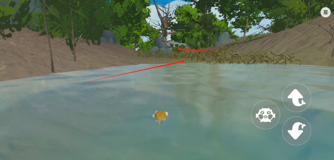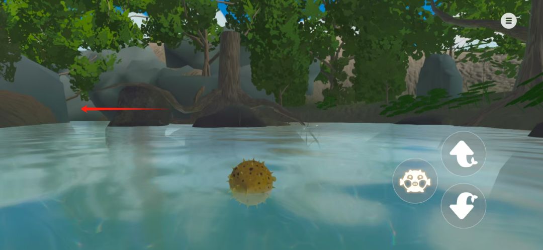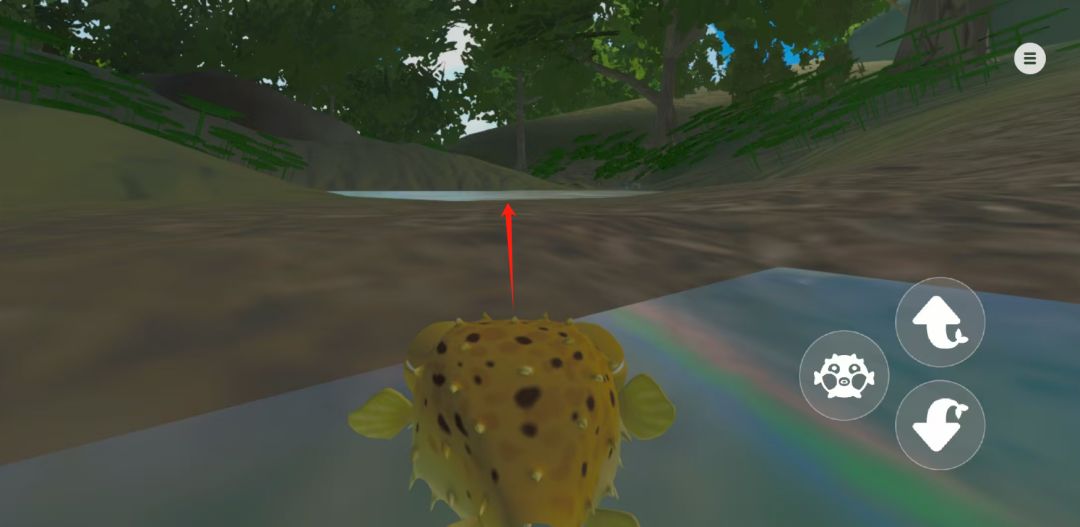 直线前进就是了,这里演示下像这种很短的距离金鱼和飞鱼都能跳过去,但是河豚的跳跃能力前面也说了,几乎等于零,所以他过去的方式只有靠近然后变大开滚