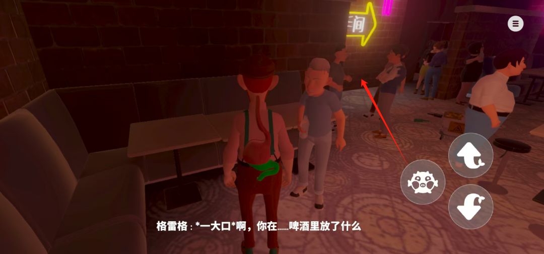 往厕所路上会被强制飞到金鱼关追我们的那个男人酒杯里,然后我们会在他的胃里得通过不断地使用技能让他去厕所呕吐,我们再进入下水道才可以。如果在他没进入厕所前就呕吐,我们会失败