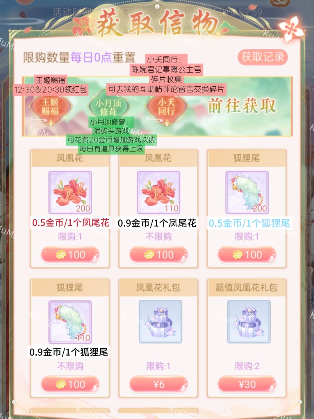 千万不要花金币买小夭同行福袋!活动12天总能集齐碎片的。