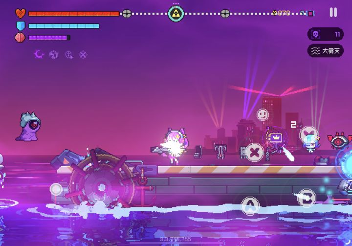 风暴航线-08-层级6-右侧三炮塔在没有我支援的情况下全歼了敌军,虽然伤害没有我那么高,但打这些小怪绰绰有余。