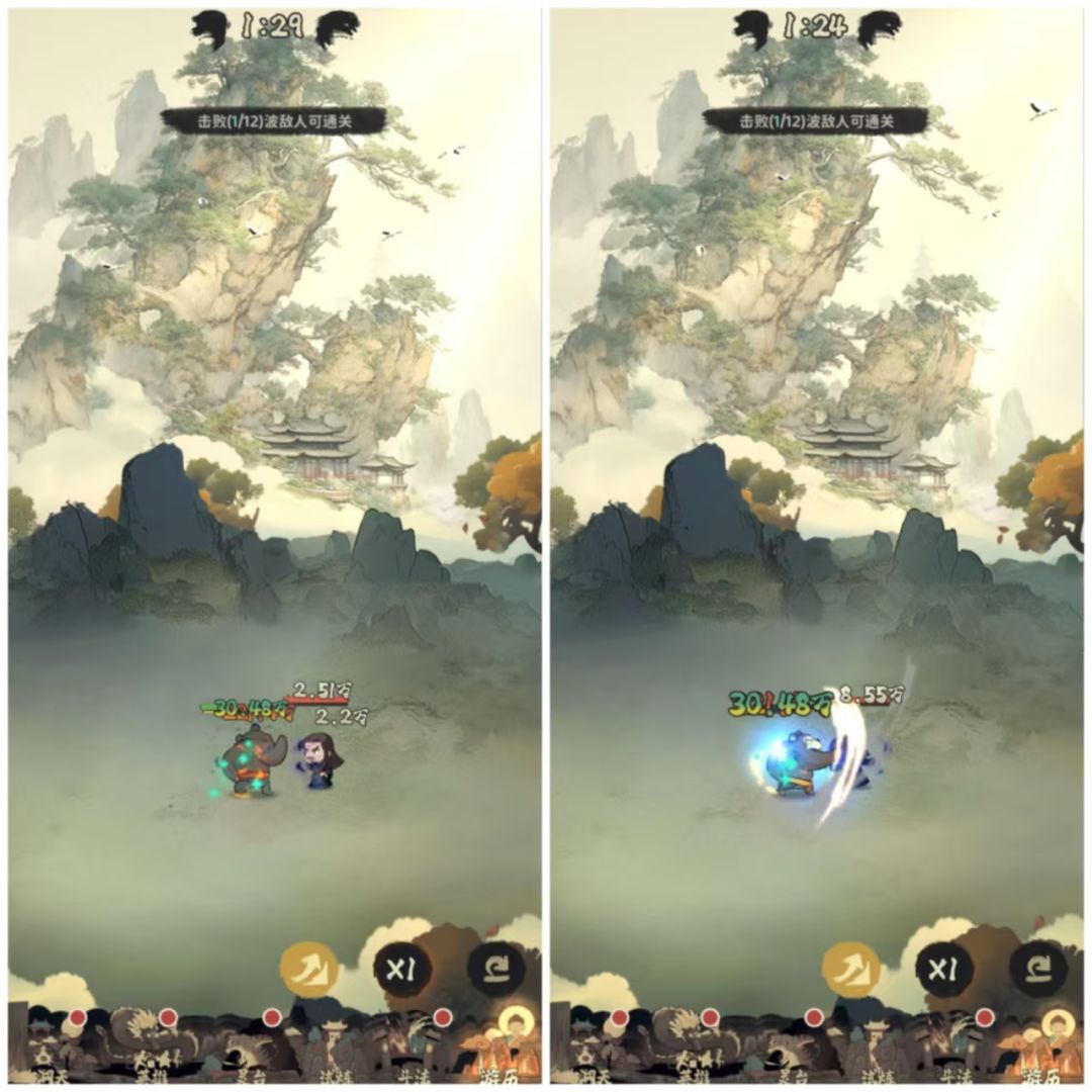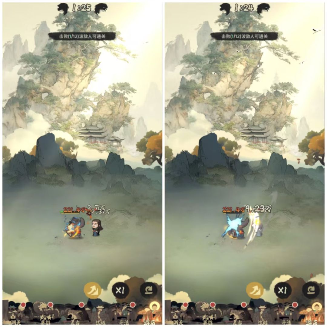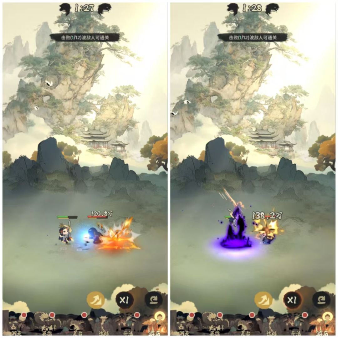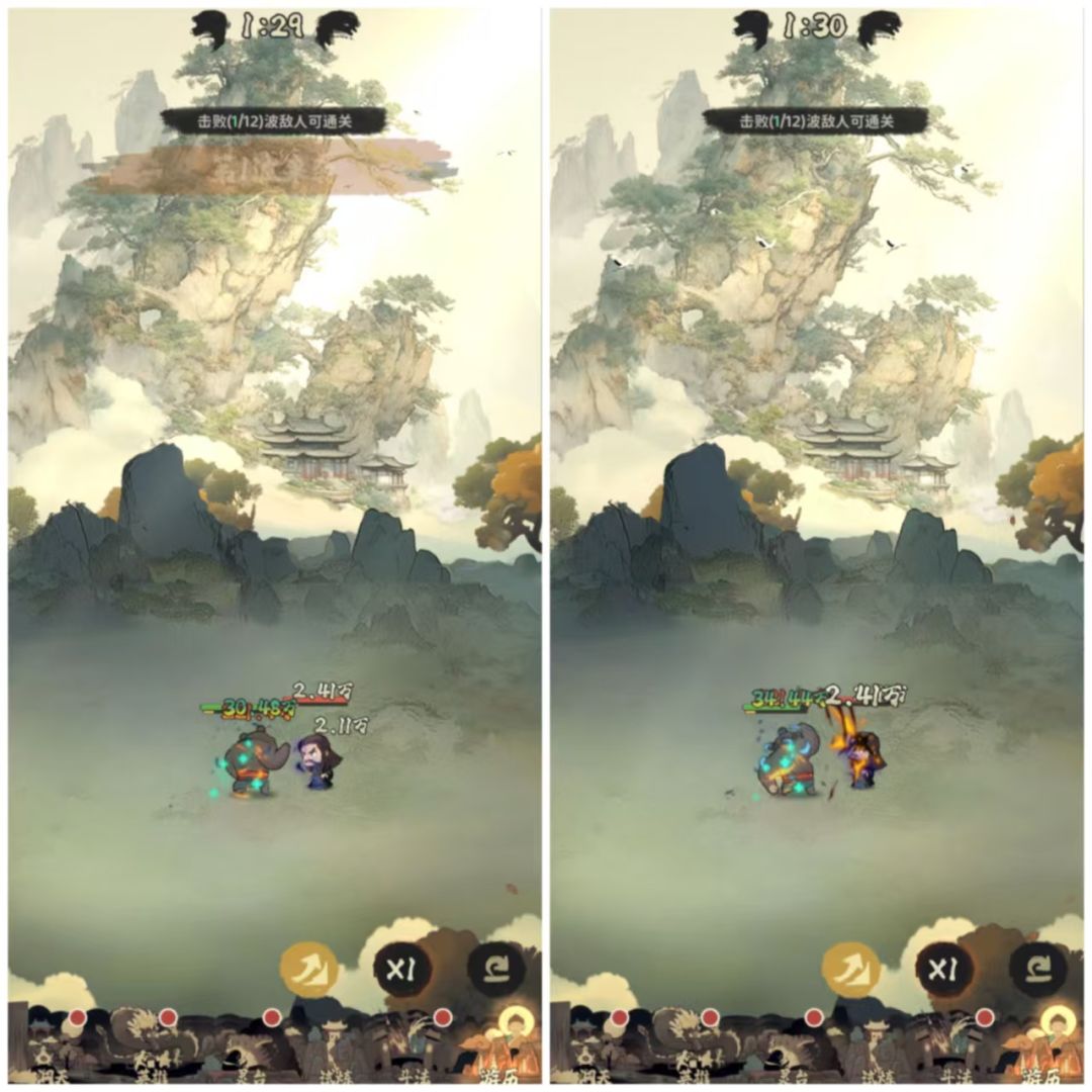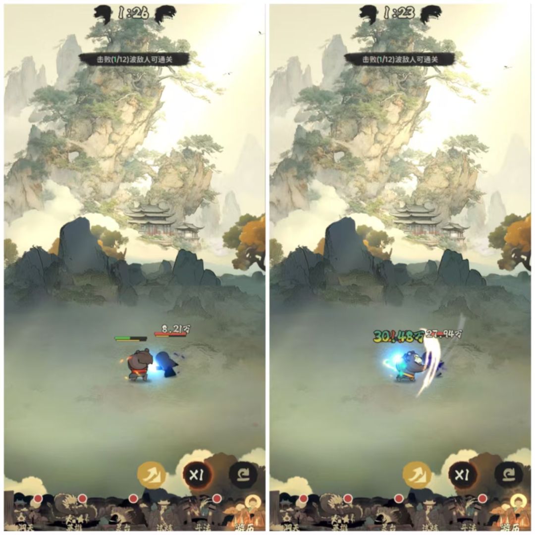 可以看到左侧佩戴纯阴芭蕉扇后的普攻伤害为2.36+2.7万,怒气伤害不变仍为8.2万。普攻伤害较白板状态的黑熊精增加11.8%和12.0%,较纯阴芭蕉扇面板数据少5%,对比风铎的效果,目前原因不明,有待探索。怒气伤害完全不变,再次说明佩戴绝品法宝不影响基础数据,多出来的战力较虚,不能代表实际对战情况,这也是游戏中能够越战力击败高战的原因之一,由此可见选择法宝佩戴的重要性。