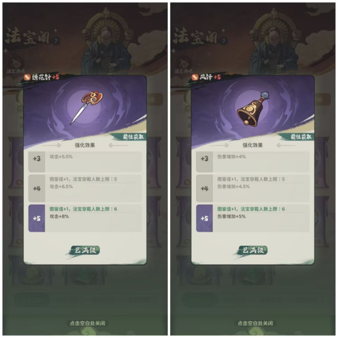 满级绣花针增加攻击8%,满级风铎伤害增加5%。一个是直接增加攻击,另外一个是增伤,下面我们来比较一下二者区别。