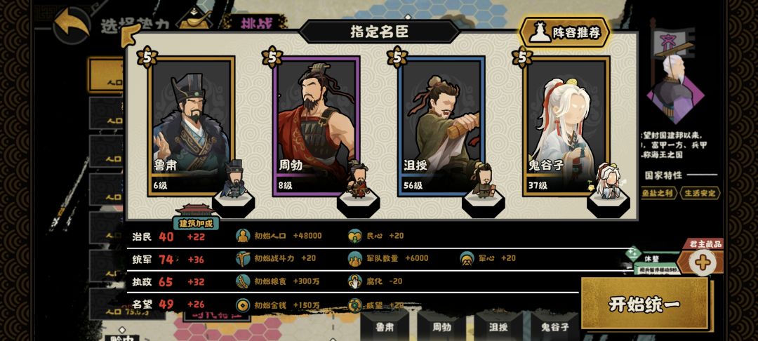 特资的获取一般有三种途径,一是战斗、流寇或下城后的战利品获取,这一方法难以具体量化收益、受剧本与运气因素的影响也较大;二是会盟的互通有无与贸易,这是前期获取特资启动的主要手段,因此形如花木兰、苌弘、鬼谷子等具有一定的拉好感与开会盟能力的名臣可以提供一定量的特资;三是名臣政策,这是最为稳定的途径,如周勃、卢植、嫘祖、杜康、乐毅、李靖等名臣可以通过其名臣政策来获取特资,从而使特资收支相抵、全局生效。