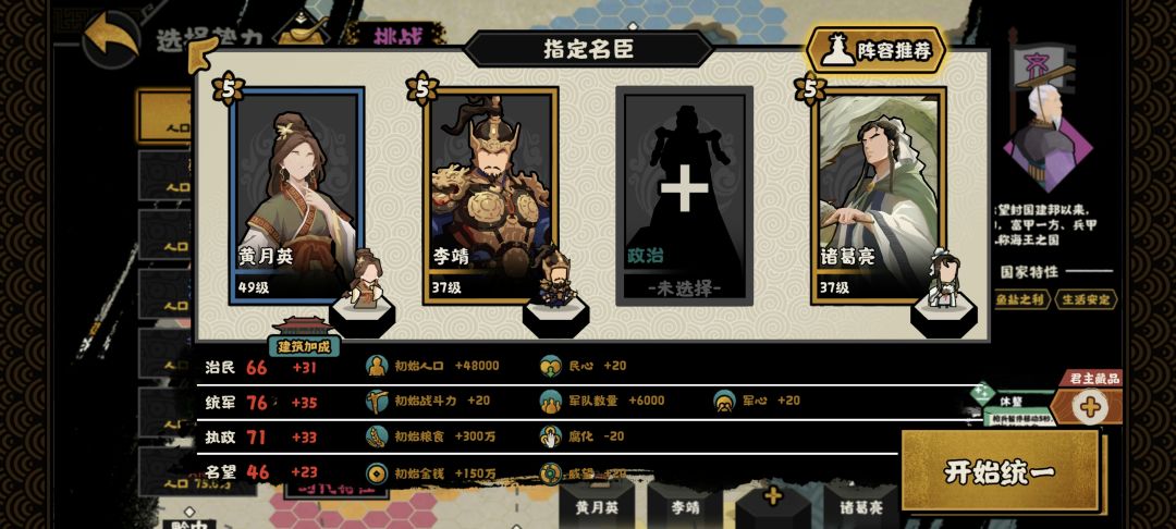 李靖:点一三政策,民心不够就靠诸葛亮的政策+20民心;