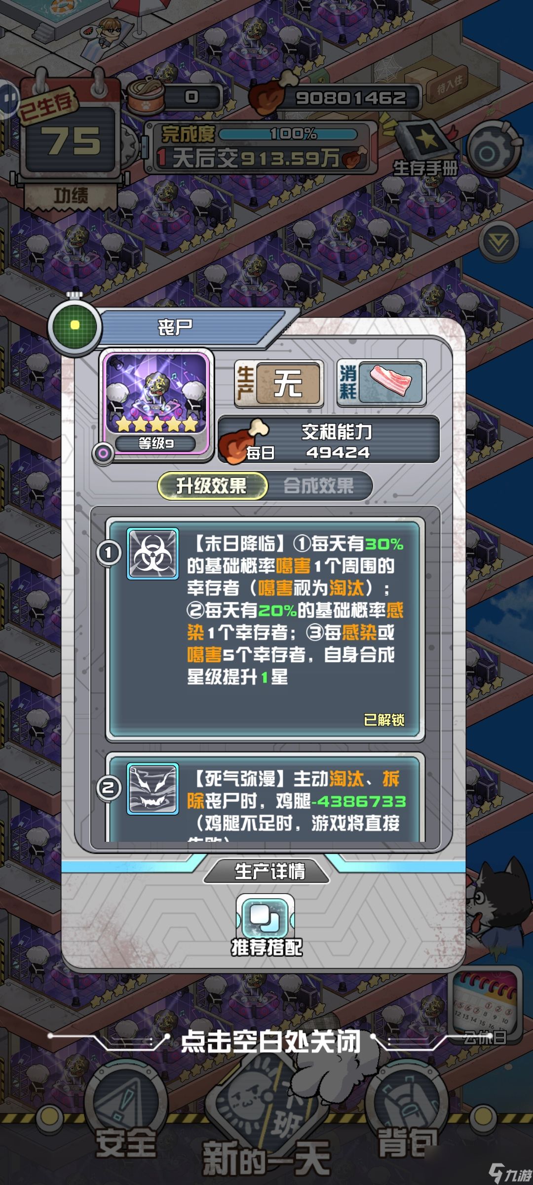 注:新手玩法的丧尸收益不高,所以幸存者基础等级,还是得往上拉拉的...