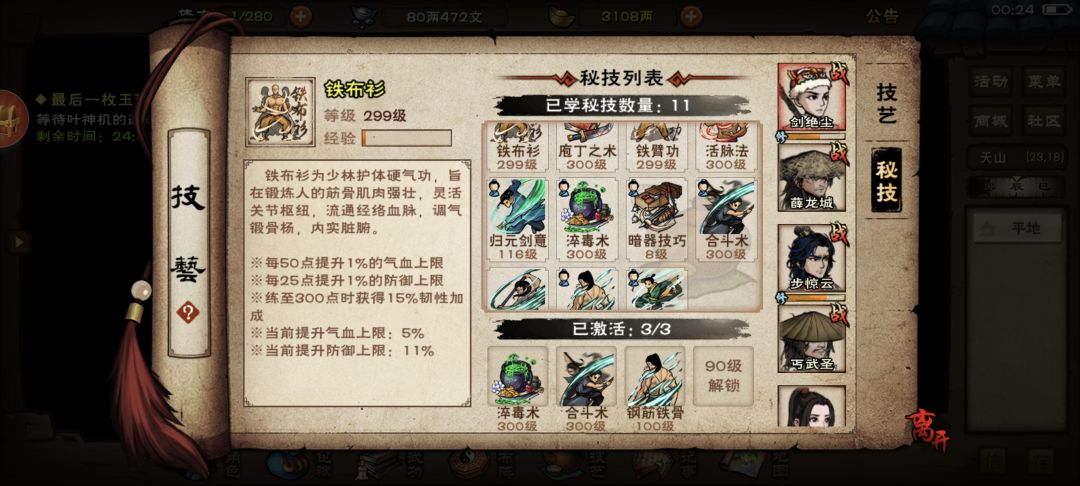 很快哈,明天第十一天就能结束新手村前期开荒①了,拿云十和寄刀,三阴九出师玄苦,开归云岛