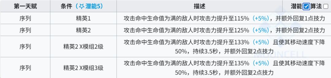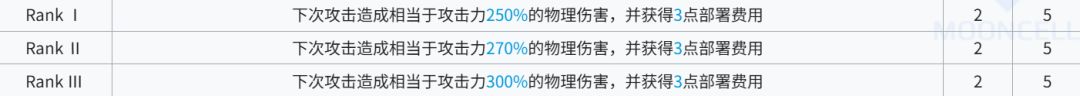 因为有减攻速所以一般考虑2技能,二技能在大多数干员都吃减攻速且高台还要吃减攻速的情况下是非常吃香的。