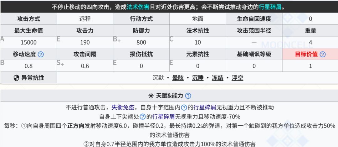 一天赋配合一技能在攻击行星碎屑时可达到1.5cost/s(隔壁尖兵看到这个回费效率都吓哭