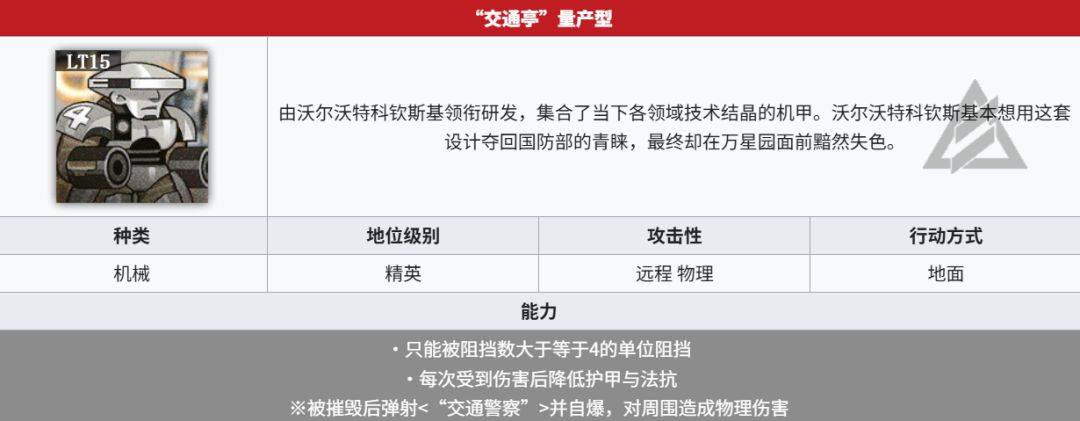 交通庭爆掉后会出现这个玩意,低甲,中低抗,移速快,带隐匿。基本上必须要伊内丝处理。