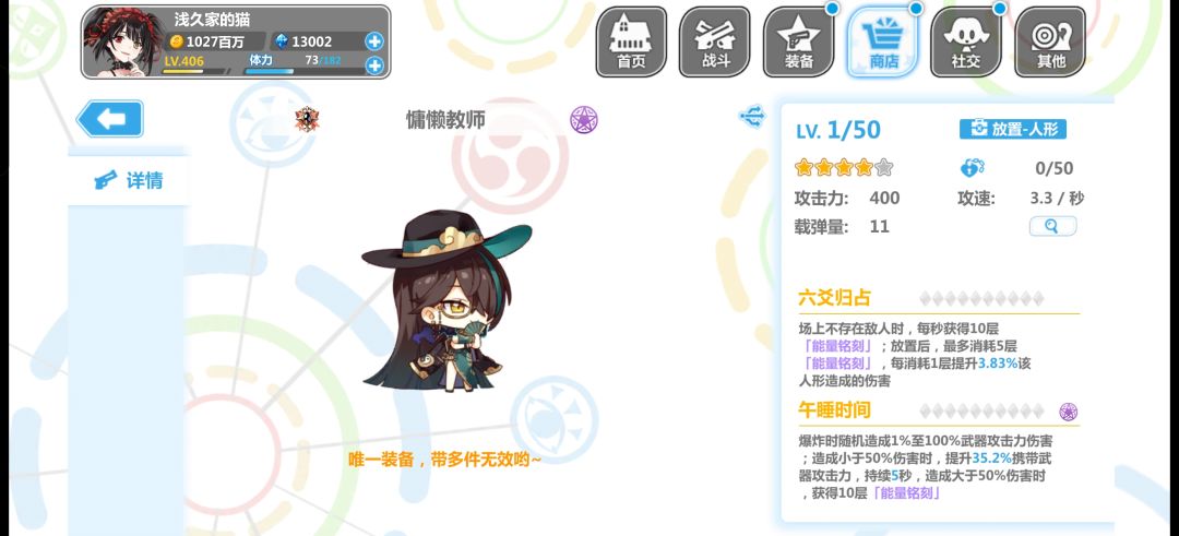 娃娃就全图索敌和吸血强伤害不算顶尖了。但是有全图索敌所以非常适合割草跑图,还有吸血不容易暴毙还能打前期的世界boos。核心就星座娃娃和徽章,2号娃娃换核爆和教师都行在琳琅屋。2号位徽章是红哲徽章在番外映像里能白嫖。3号武器和徽章有啥带啥有伤害带伤害有移速带移速,武器新手池子的恰卡纳,rh,巴德尔,都行要是都没有世界boos的图纸喷雾也能用。在没有那就琳琅屋换一个喷雾筛选,选择喷雾找一个加伤害或者移速的,推荐常驻加速的,衣服垃圾屋的,没有就有啥带啥最好是带移速的,琳琅屋里筛选移速的就行,OK下课