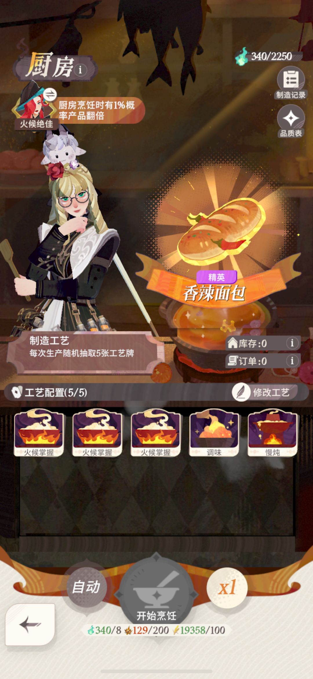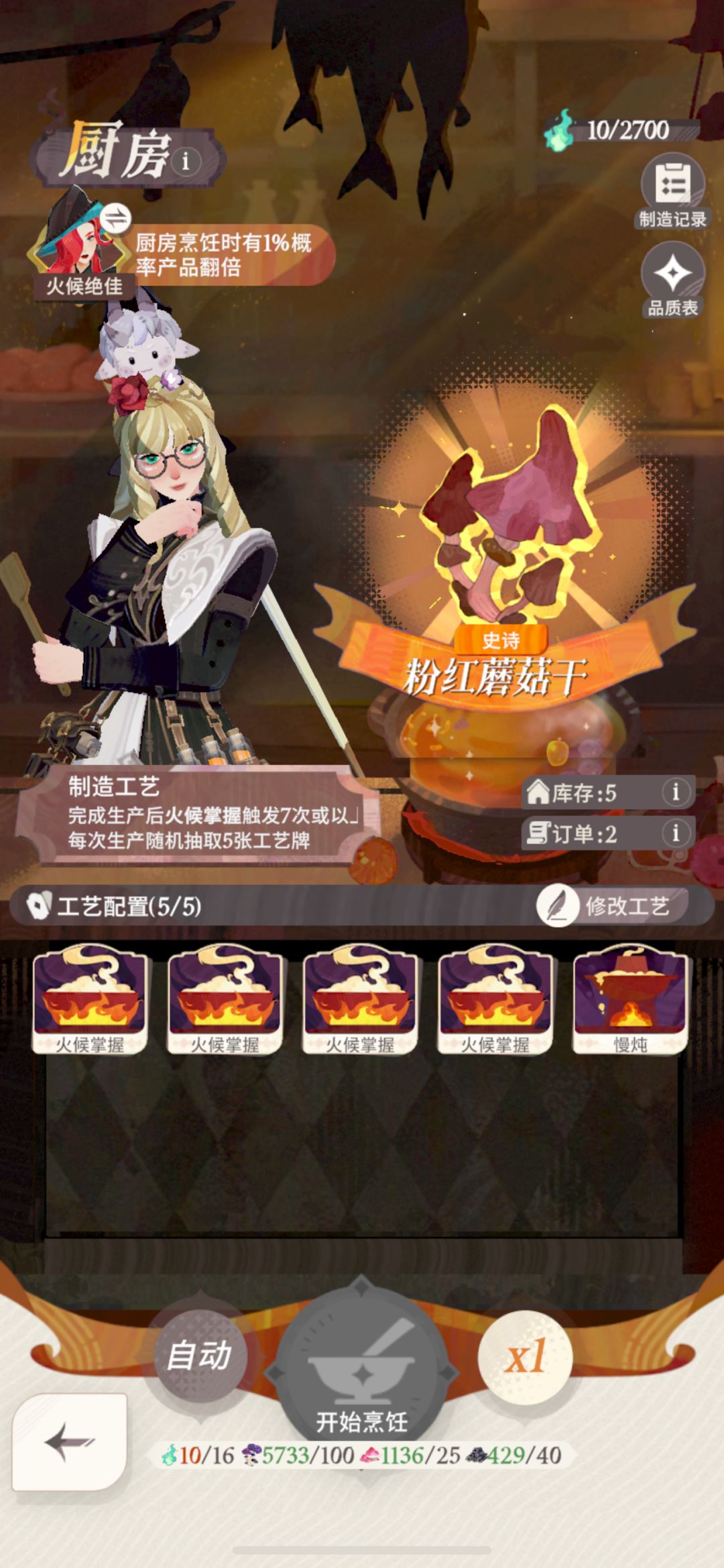 【厨房】8个2星【保温铜锅】,配方【熟练锻造,熟练锻造,熟练锻造,升温,蓄能】→→→【厨房】火候掌握 Lv3