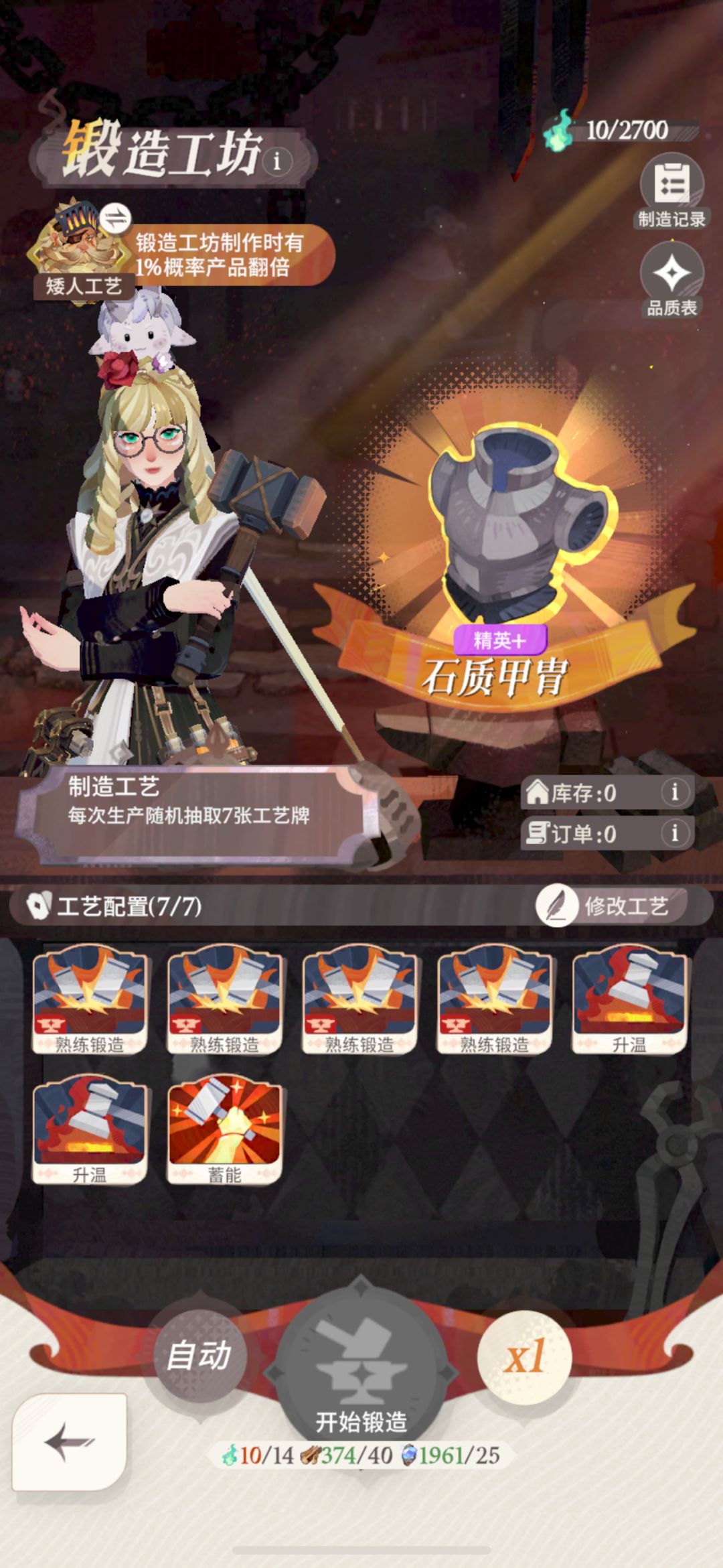【厨房】消耗2400个火元素→→→【锻造】升温 Lv2