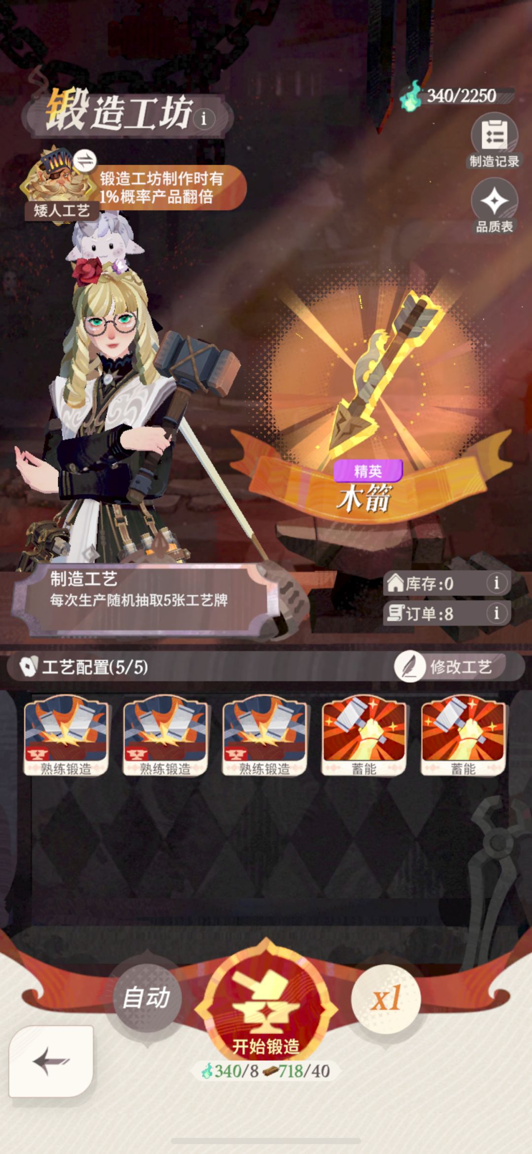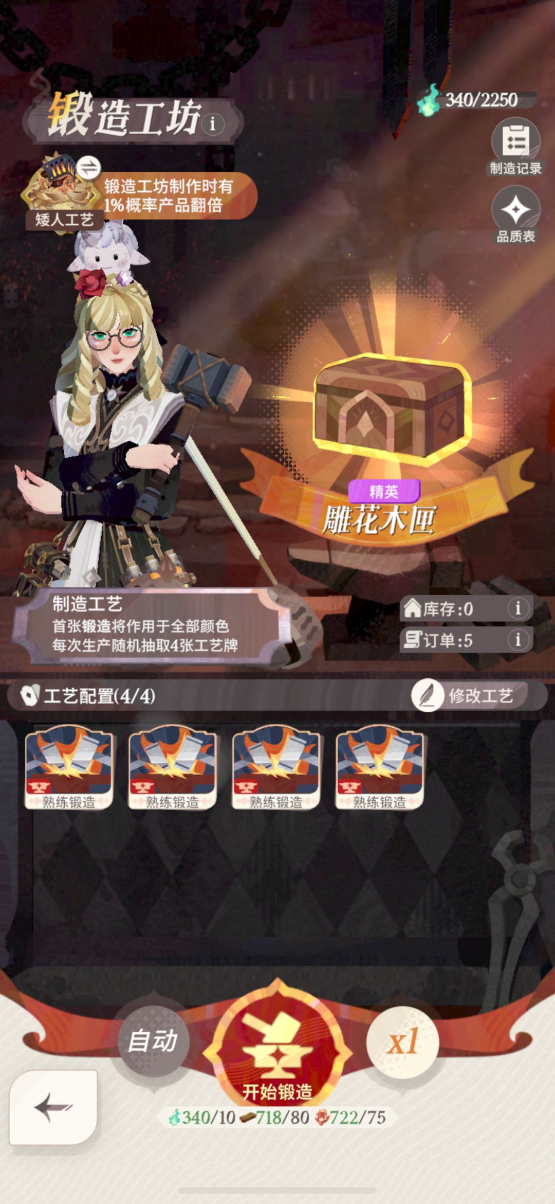 【锻造】8个1星【雕花木匣】,配方【熟练锻造,熟练锻造,熟练锻造,蓄能】→→→【锻造】熟练锻造 Lv2