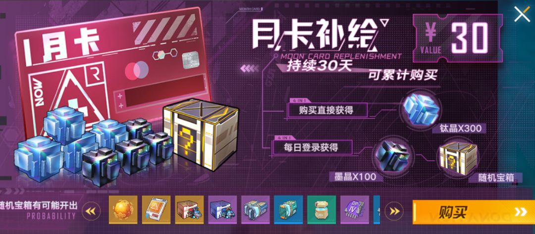 月卡:这个是性价比极高的礼包了。