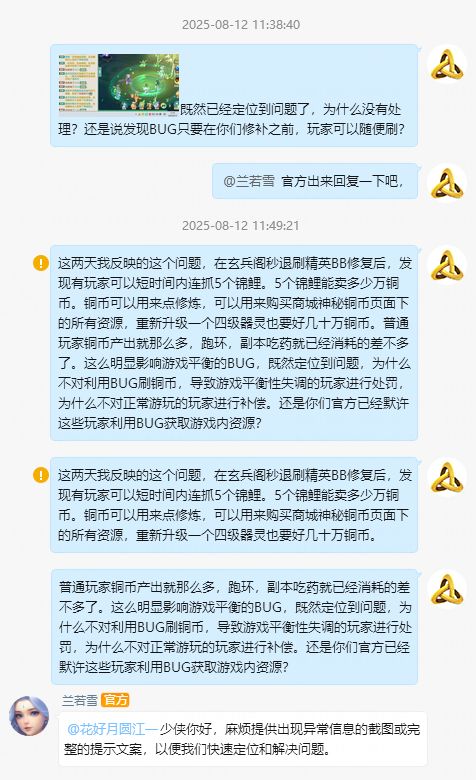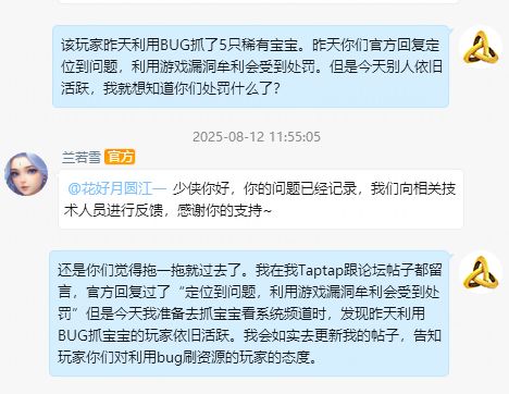 对利用BUG刷资源的玩家无处罚